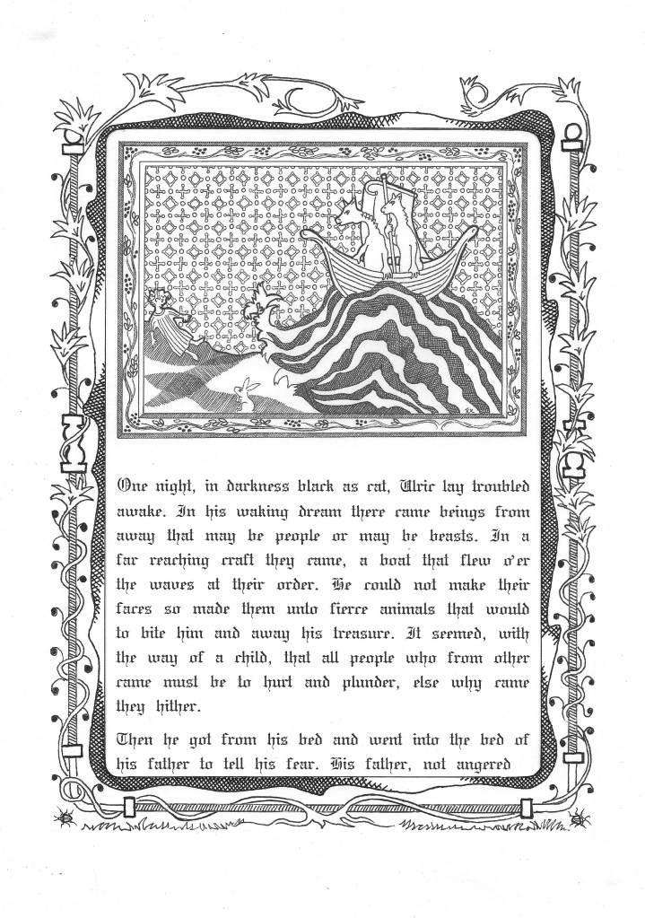 In this Famous tale the eponymous Ulric comes face to face with his fear of people from outside his world. He faces his assumption that all unknown people are monsters of evil intent whose only agenda is to harm him and his family and steal away whatever they see. Discovering instead that travellers, adrift on the north wind, are most likely lost souls escaping war, pestilence, deprivation and exploitation. They come in search of peace and safety.