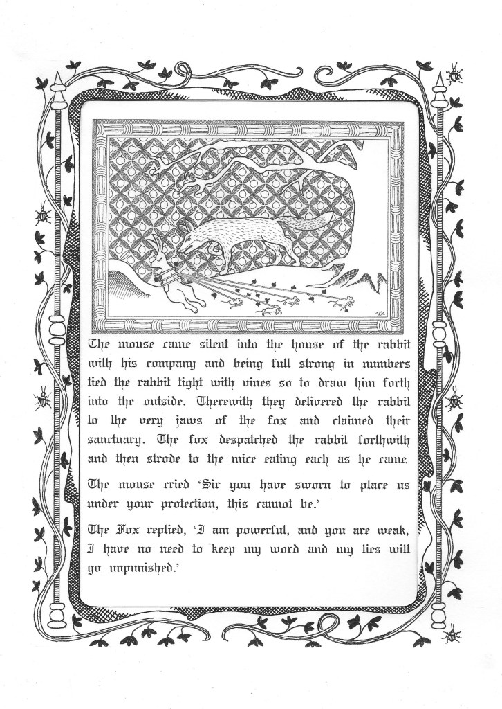 ‘I can deliver to you a full-grown rabbit, but in return you must swear to protect me and my kind and chase after us no more. Our accord shall be our safety and protection in return for a rabbit.’