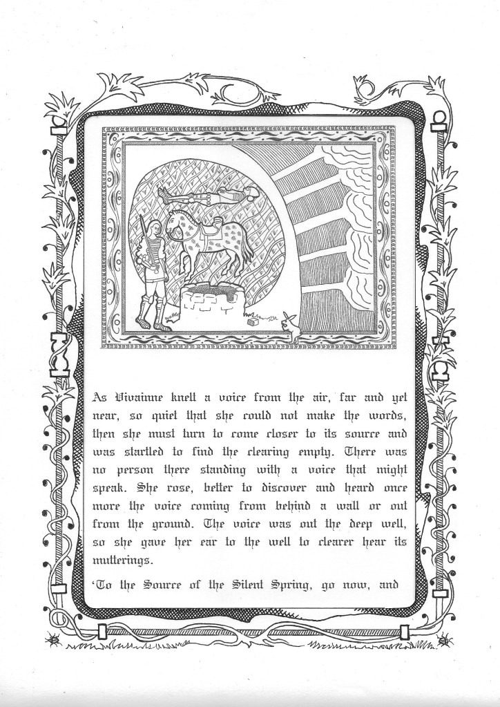 ‘The Source of the Silent Spring, you must come to undo the enchantments and wrongs and maladies that have been given. The waters that neither rejoice nor complain, neither sing nor dance across the stones will wash your beloved’s sleep away and restore into her the life and love that is yours to claim. I, the Spirit of Waters serve this ancient well. Since before men and before time, I give life to the Waters of Silent Spring, now my powers wane. I give you this boon to save your beloved and in return I would that you clear the Silent Spring so that my waters may run strong again and my powers shall return.’