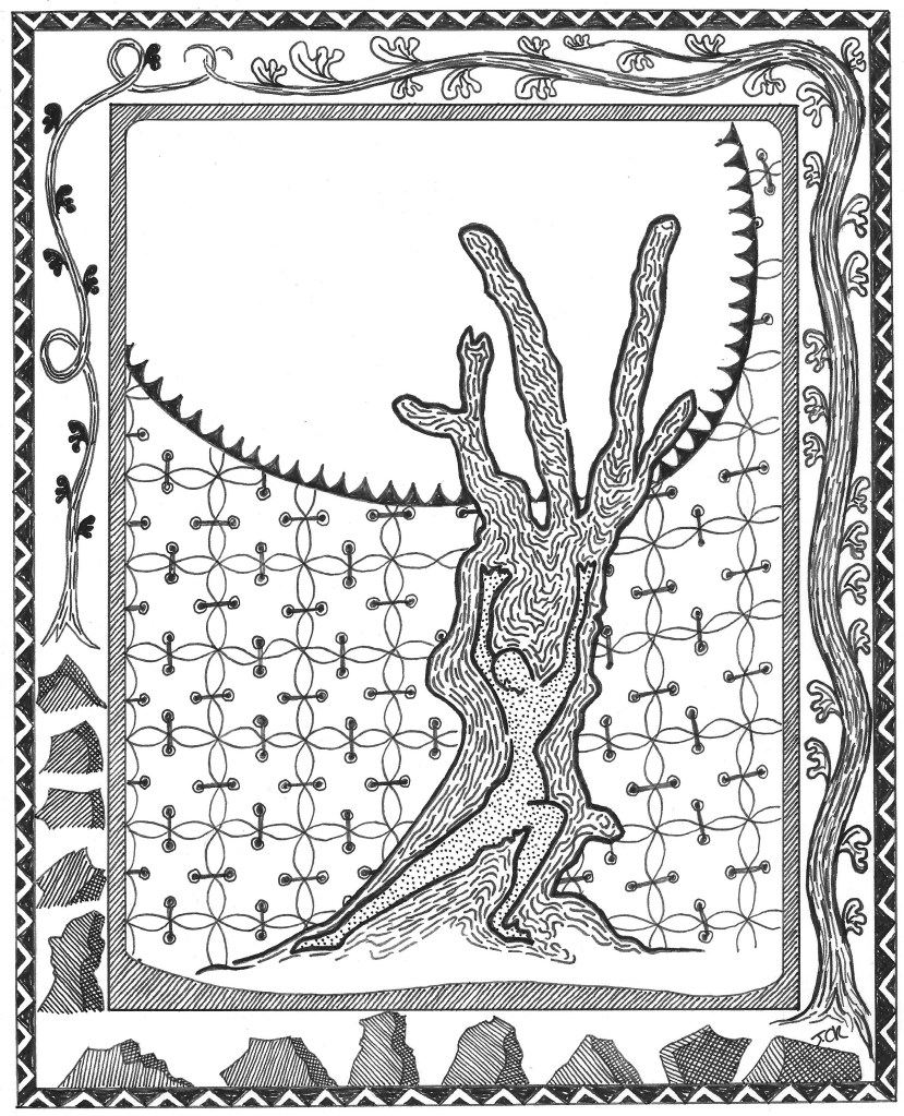 Too late, so late, maybe too late, he feels his pedestal shift and he sways, arms in the air to balance, but the footing is broken, the pillar has lost its integrity, the resilience is wasted away. Standing stiff, in fear of the fall, he has forgotten himself at last, but the sea has no fish, the sky no birds, the forest no game.