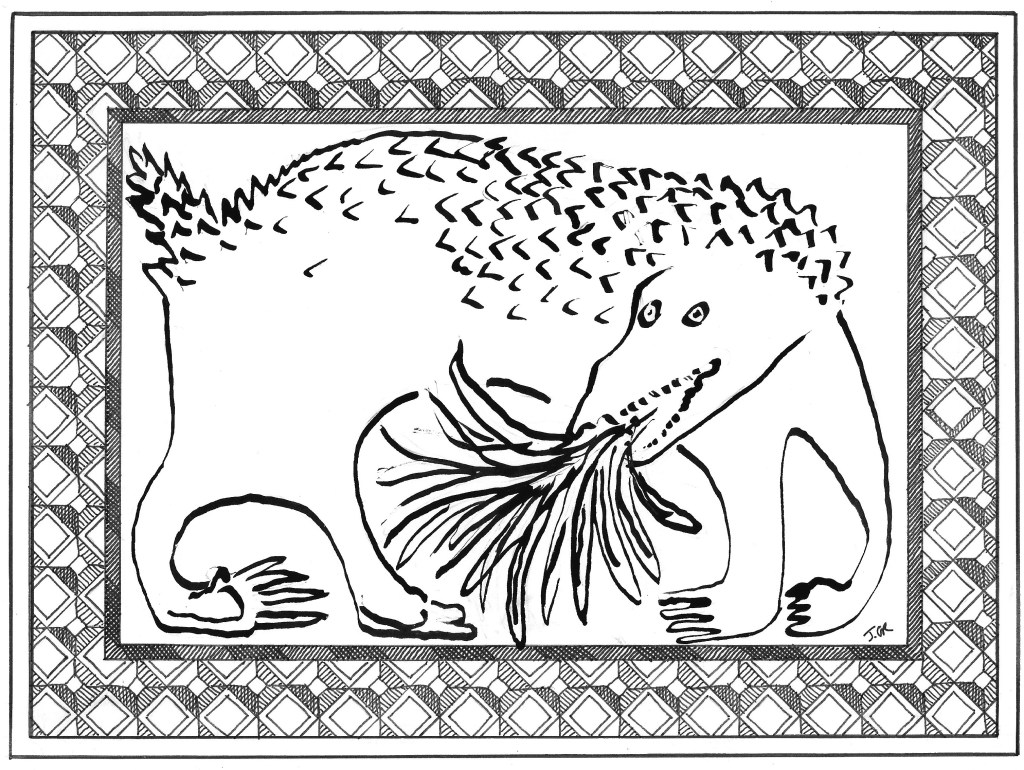 At her signal, all three rode out from the cover of the forest and showed in the light, with their great spears in hand. The Beast looked around from one to the other and opened its jaws wide in a great yawn of fatigue. Slowly the warriors came close until the beast was unable to move without some injury.