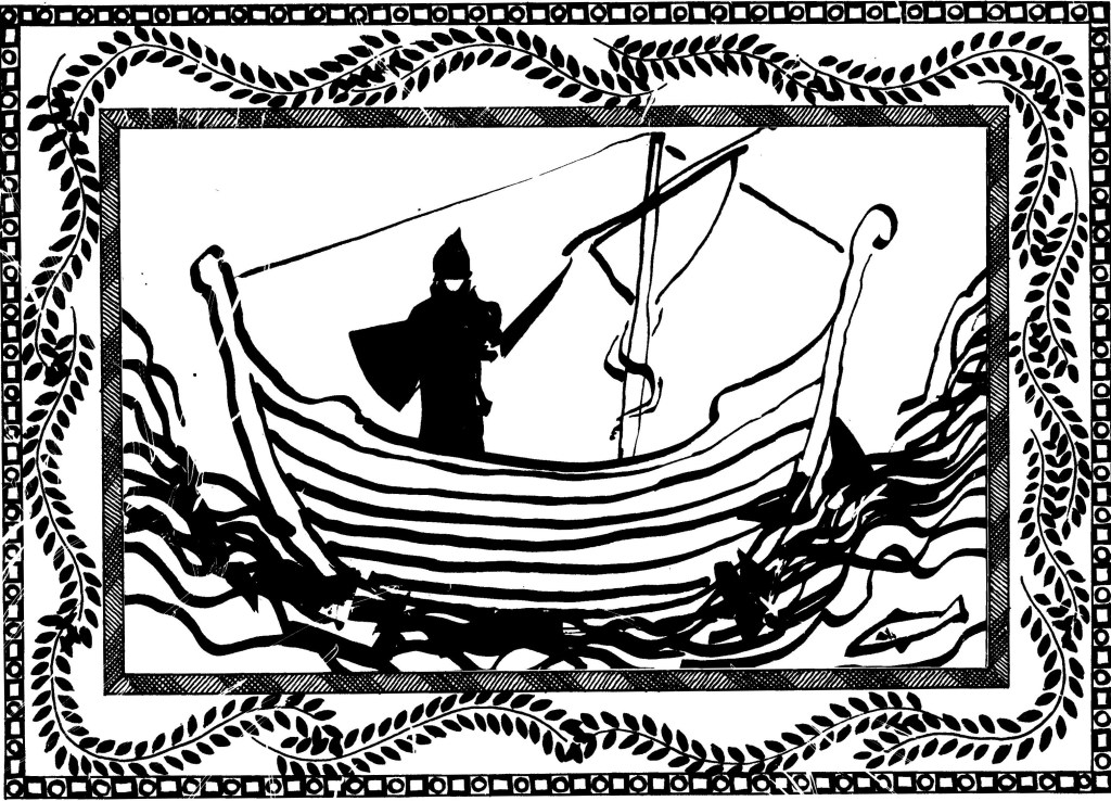 Here they found some fisherwomen and fishermen who were good with fish. Although they knew the whereabouts of the Blue Knight, they would not tell it because they understood that the Blue Ship protected their sea. That if he was to be taken and unenchanted, then any great serpent or ogre might move in and make fishing a dangerous and unpleasant experience.