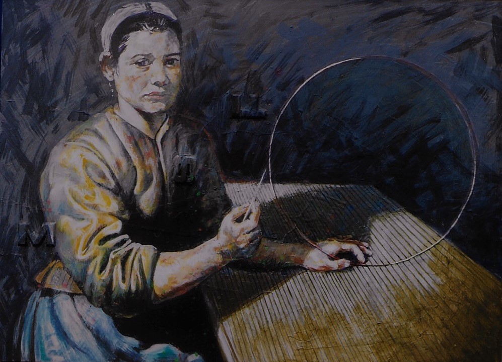 This is a painting depicting the Tale of the Perfect Circle. In this version we see the circle depicted, originally drawn on a piece of cloth, as some sort of hoop. It was quite common to find this tale alluded to in paintings of domestic scenes, with a circle drawn in the background or hidden in other aspects of the painting or drawing. There have been many studies of this genre of paintings over the years, the provenance of this image, however, owned as it is by the Guardians of the Cave archive, is know to be genuine.