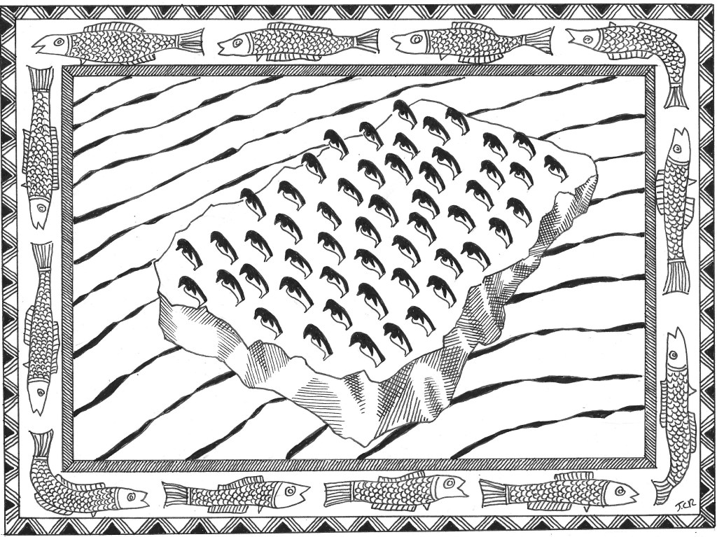 Now the forces of untruth gathered about the skirts of the Hill of a Woman making a dance to undo all that had been made good. The Knights and the Sphinx fought hard and a circle of light was around them but they could not and it seemed their was doomed to gallant failure, when in the West came a wind to blow and the Sun came then to burn and the Ice froze everywhere and then, the clincher, a great army of Penguins rolled in from the away with their Empress at the fore, and their cries of More Ice, More Fish, came ringing down the wind, till all the darkness was quashed and they could all relax.