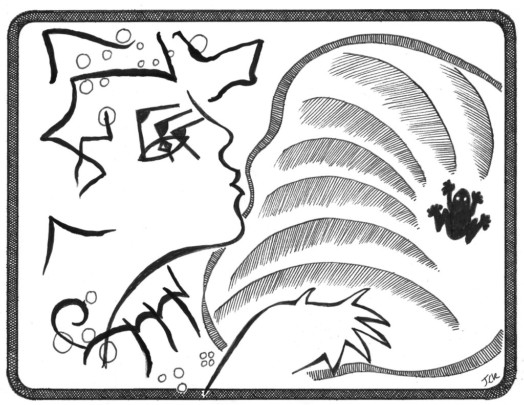 The Sphinx addressed a frog high canopy. Give me your poison now or I will tear down your world, she said, tipping the edge of the Frog’s leaf dangerously low.