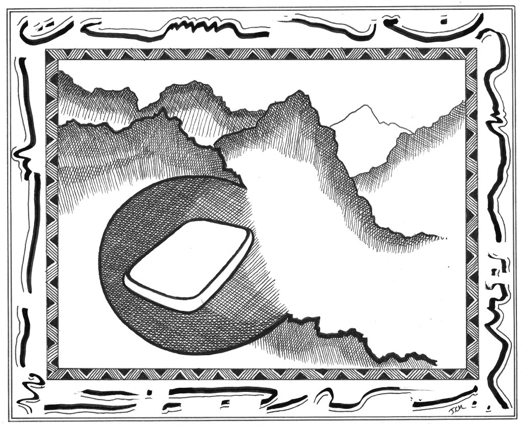 Now, when the Motas were trapped beneath the mountain, they became sad and sang their song of life all day every day to keep up their spirits. This song was so strong that many creatures and some acute people of sensitivity could hear the song upon passing the mountain. The song, being the song of life itself, seduced and beguiled those who heard, and they soon became enthrall and must return to hear the song regular. In a year, a mystery of stories abounded about the song in the mountain and many wise sourcer ers and esses worshipped there.