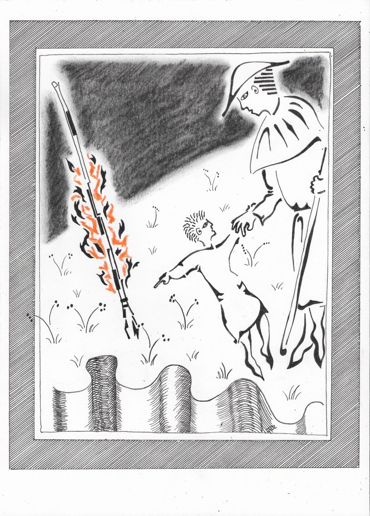 I am a Burning Spear, Mark 6 (the latest version) my serial number is 45655566565B/6. Can you help me please, I seem to have undone my programming. In what way can we be of service? Well, there is a small hole just below my blade. I had a special little gadget that came with my maintenance kit, which incidentally was beautifully packed in a special little box with a shaped foam compartment for each item, that is used to push into that hole to return me to factory settings. But obviously I don’t carry that about with me on mission. You can use the end of an unbent paper clip, if you have one about your person.
