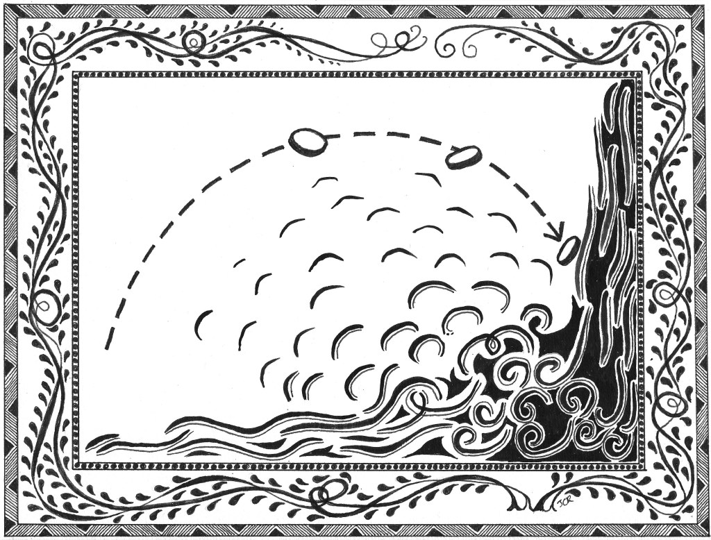 The coin flew high in the air, then, not caught upon the buffets, but in a true arc above the roiling mists, to disappear into the water with a plop sound.