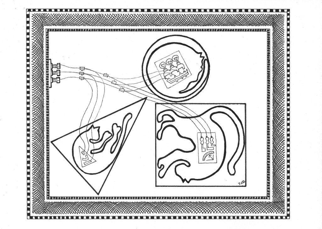 Of a sudden, a small doors open in the side of the recumbent hat either side of the scroll screen and tenuous wings extend out and begin to flap and whirr. The Hat at first still, wobble and rise when the wings get going. Rising slowly to waist of a person height before the Blue Woman Knight, seeing the escape in progress, made rushing assault, running her sword through and pinioning to the floor, trapped.