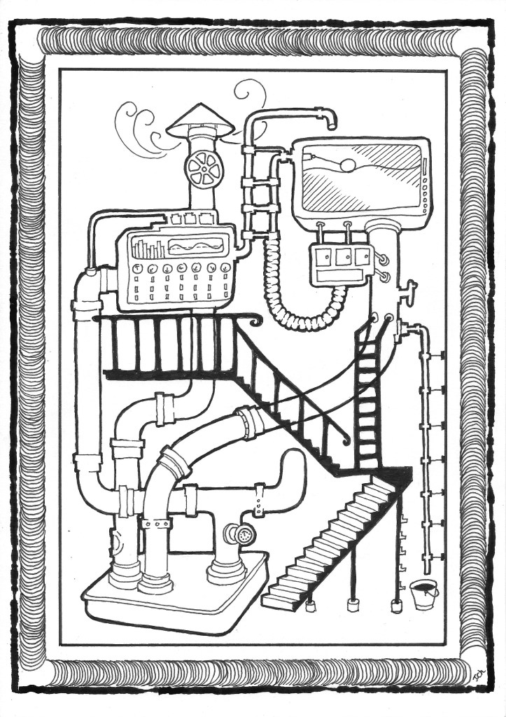 I’ve got it, she bellowed, it is this button here. She pushed something and all hell let lose. Steam or hot gas started venting from various points on the pipes and the gauges went ape. Lights of various colours either blinked, turned on, changed colour or turned off.