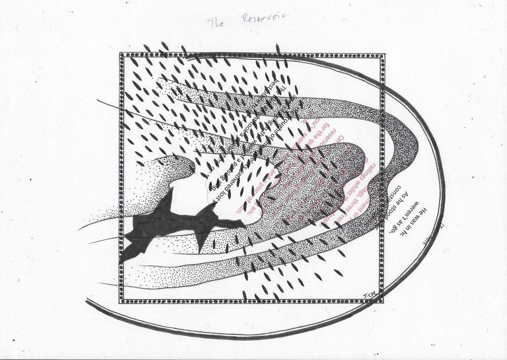 At the very centre of the water, or there abouts, where the circling winds lay still to rest, he summoned her, and she came. Rising down into the correct place, with her hand maidens and courtiers all wet through. When they had been dry below the surface. Her hair was blue and her skin was blue, her teeth were blue also.
