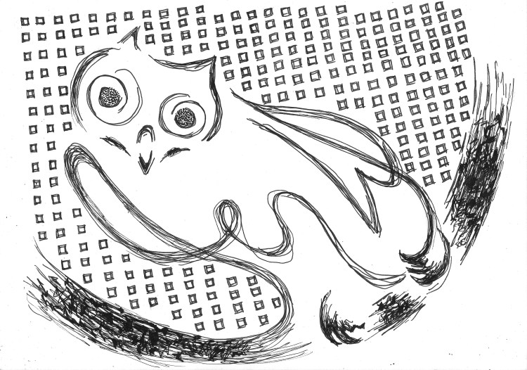 Just as the Owl was about to say, I feel wiser already, a demonic energy took over its left eye, which started to revolve in an independent fashion, it raised its left wing only and tried to take off, this caused it to spin around like a windfarm.