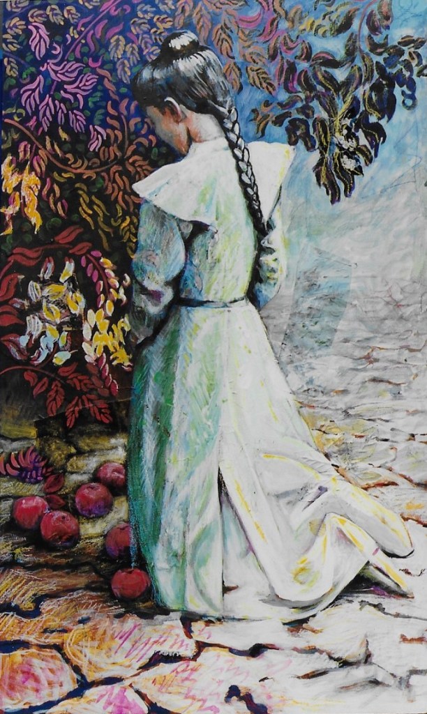 Maybe I didn’t see them, she turns her back, Perhaps they weren’t there. What can I do anyway, hide these blazing oranges behind a curtain, build pyramids in the cowshed, roll them under my bed. They will be discovered, lying there, fizzing with colour, waiting to be misinterpreted. I shall cover them with my sacking cloak before any damage can accrue, put aside this outrageous sight and action a plan of action.