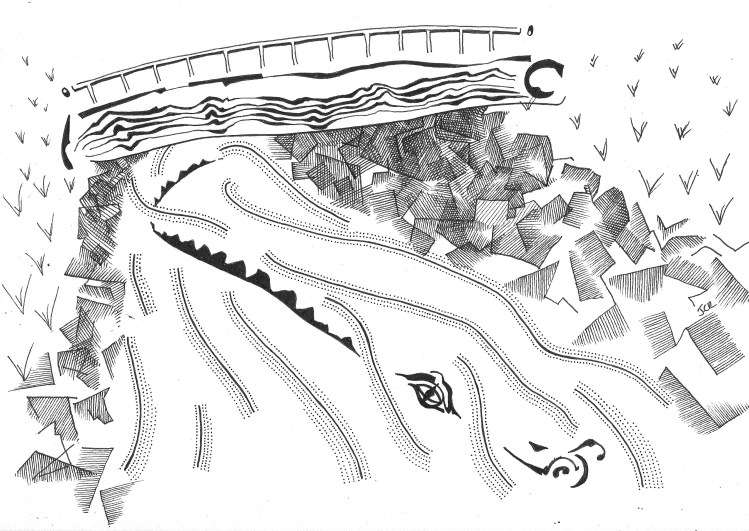 The integrator slithered delicately into the water at Constance’s feet. Only his eyes, nostrils and the knobbly ridge along his back showed above the parapet.