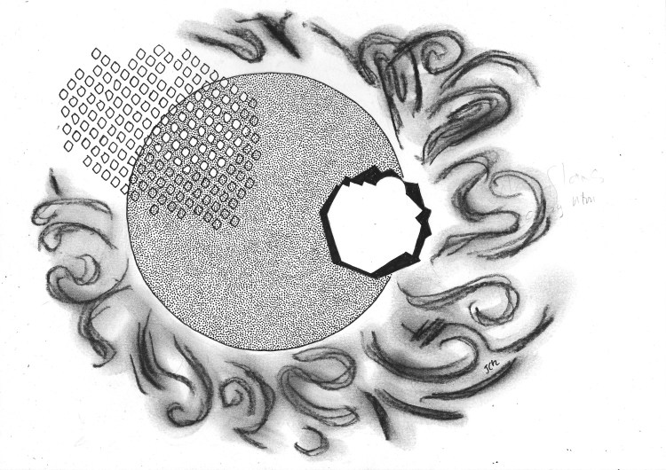 Studying the expression that was the corona with darkened telescopes, revealed Aton’s dressing up box. In plumes and swirls, the constituents of marzipan and kataifi, honey rivers and streams of caramel lava twisting in widening gyre. The detail, assorted chocolate boxes, ribbons swiftly removed, nestled in a tray of plasticma, each individually tailored to hold a particular variety without hurry, next a small pools of crème anglaise in shoals and patterned configuration replying to each others gravitational attraction, with particle ejected of cane sugar, unrefined and clumping with sticky fingers.