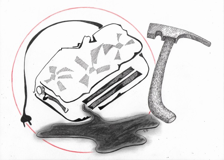 Her intention had been to fix the toaster, which, having ceased toasting, was causing breakfast delays. She had assembled a fine collection of hammers, ranged in no particular order across the bench, beneath a shelf of exhibits. Choosing a geologist’s rock hammer and picking her spot, she smote the toaster thrice in quick succession. The toaster or was it an air fryer, suddenly exuded a golden liquid which perfumed the air with the scent of sweet meadow flowers.