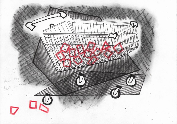The gang of Hoi Poloi had entered the fabled store cupboard at the end of the corridor, pushing shopping trolleys pilfered from a nearby super. One such had a defective wheel, which was undetectable until the trolley was part full, and began to make a rhythmic thump every turn of the. Another developed a squeak which really grated the nerves and made one feel embarrassed, as if it was your fault.