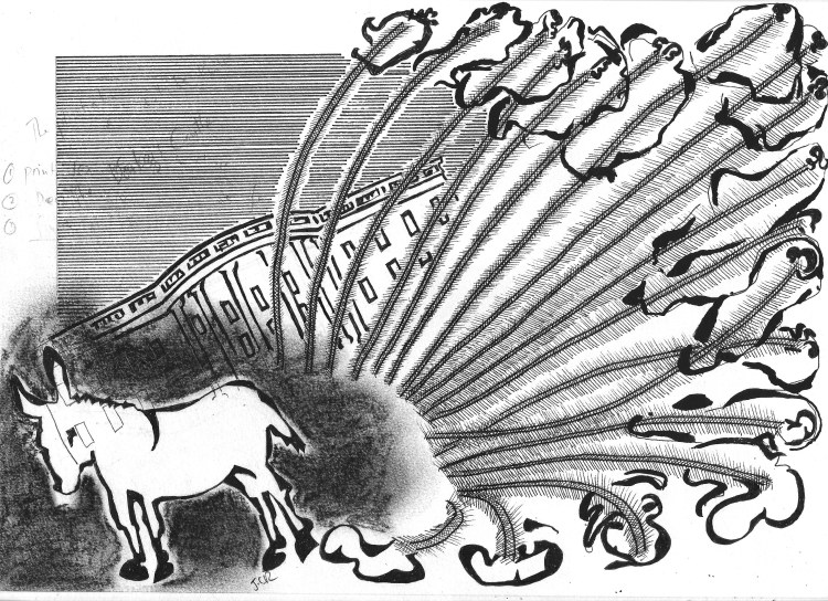 When the Donkey had taken full charge of the white pavilion, it proceeded to build castles with sand made concrete by the jars of sticky lies collected. First and foremost, planning permission was sought, and when it was denied, the authorities were fired and swept unceremoniously under the great carpet which was kept nearby at all times.