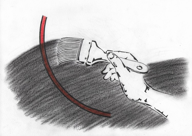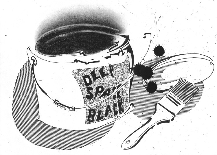 As I covered the spaces betwixt and between the great structures with a satisfying swathe of Deep Space Black, I noticed that some areas were more bumpy than others and I became afraid that the surface might wrinkle. Then I saw that there were, in effect, bright moments that refused to cover and I realised, in a light bulb above my head, that the lost matter was not dark, but light, and that I had found it.