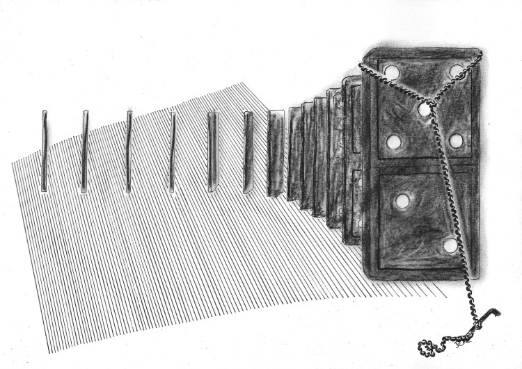 The only unknown is what is being crushed by the final Domino?